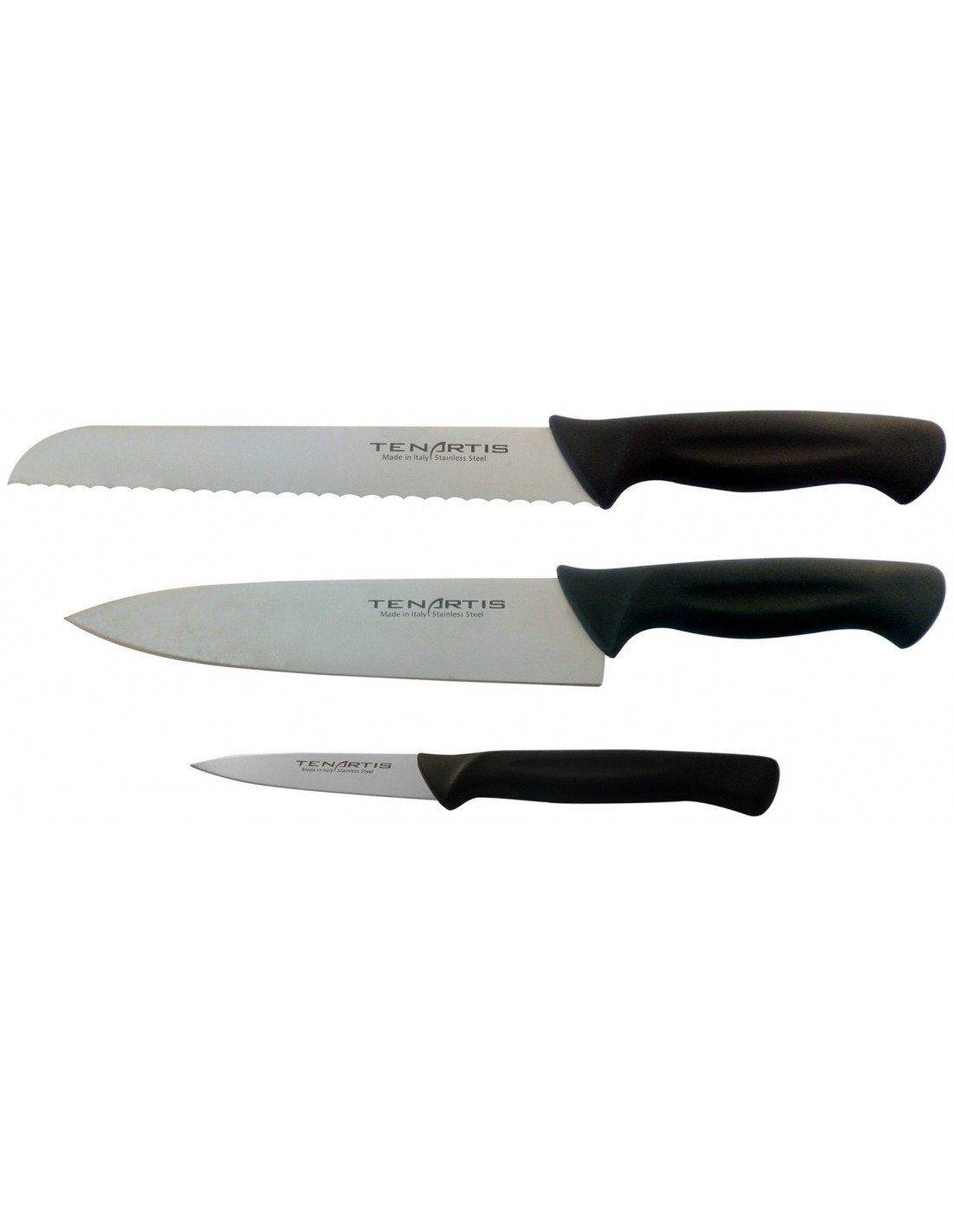 Gemüsemesser 10 cm, Küchenmesser 20 cm, Brotmesser 20 cm (Klingenlänge)