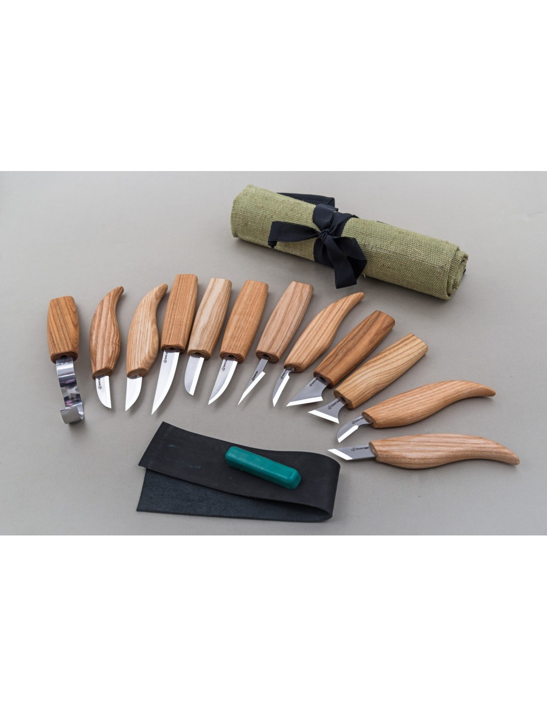 Das Set BeaverCraft S10 enthält 11 Messer und 1 Hakenmesser: