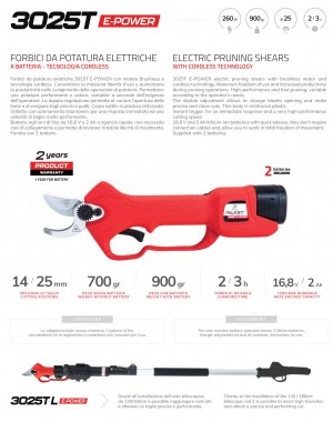 3025T e-Power Elektrische Astschere mit kabelloser Technologie: maximale Bewegungsfreiheit und hohe Leistung für schnelles und präzises Schneiden.