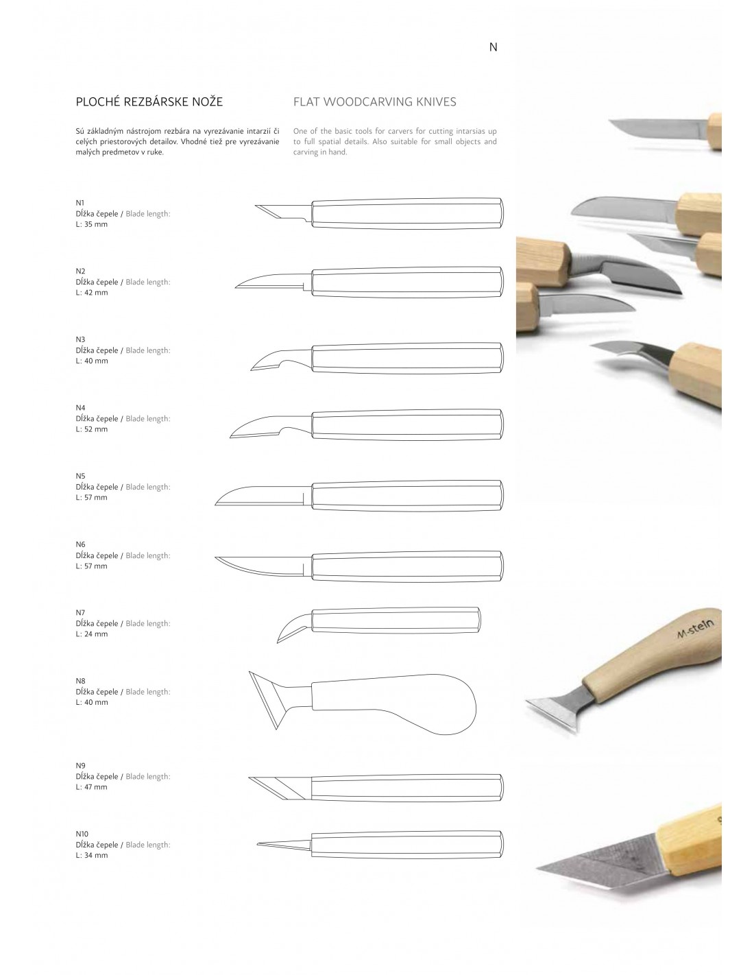 N5 Breitere, längere Klinge für stärkeren Druck. Universalmesser zum groben Formen und Nachbearbeiten einfacher Formen. 185 x 25 x 20 57