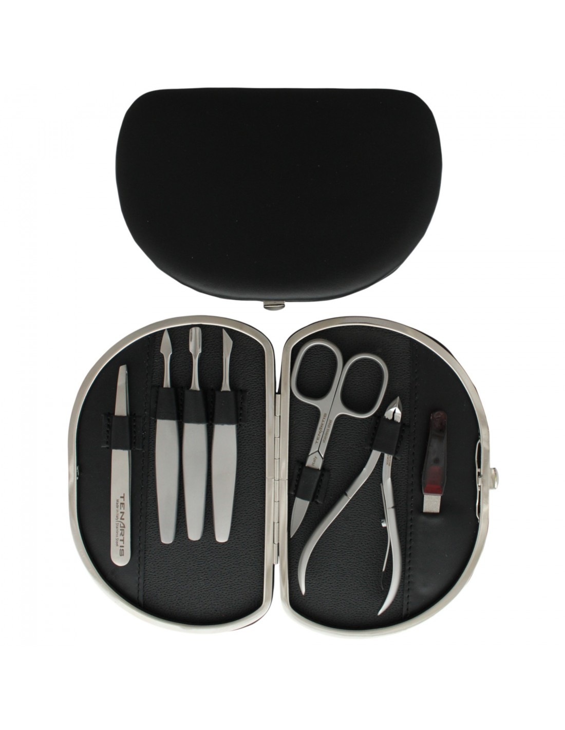 - Contents: cuticle nipper, nail scissors, tweezers, nail file, 3 nail care tools
