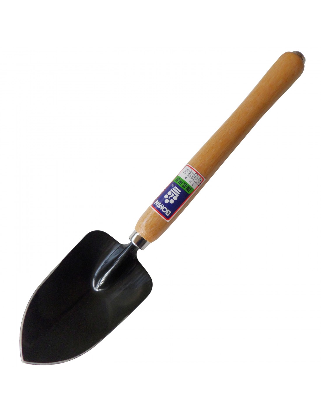 Chrome-plated steel broad hand shovel with wooden handle