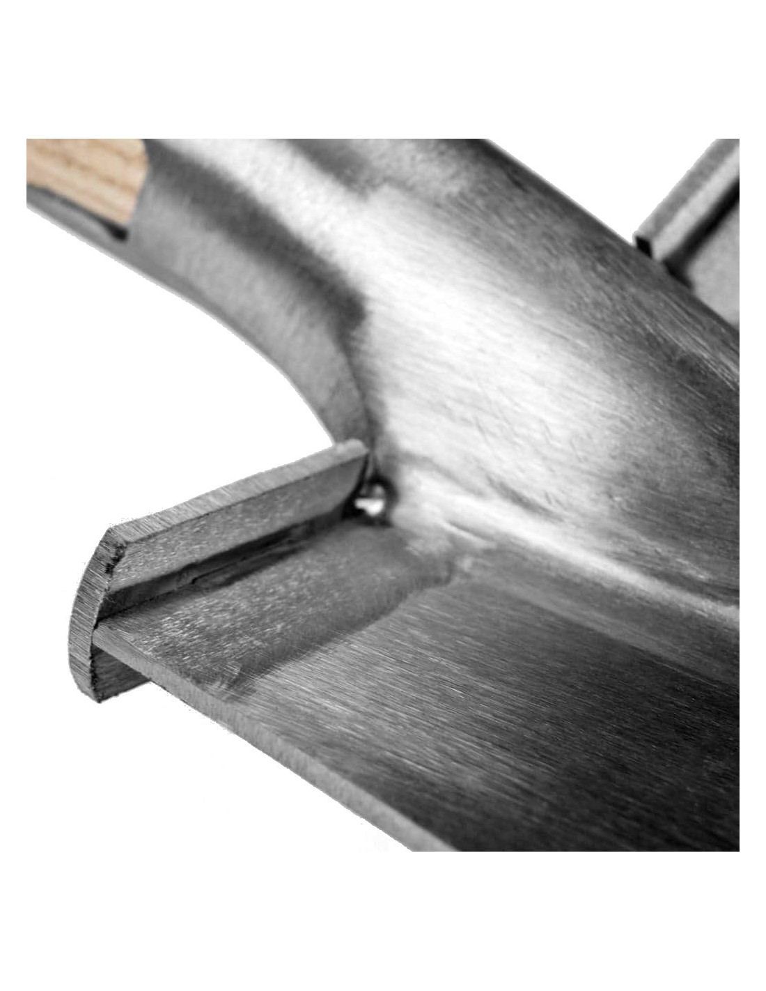 The blade of the border spade is curved on the long side to give it strength and to prevent fracturing the blade while digging. Furthermore, the angle at which the blade is attached to the handle is specifically determined to make working with the border spade more comfortable.