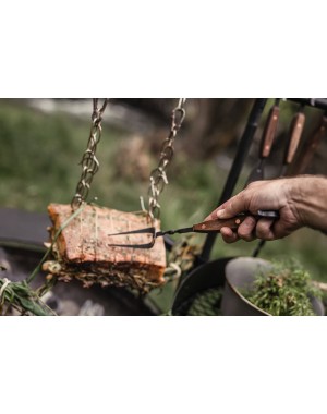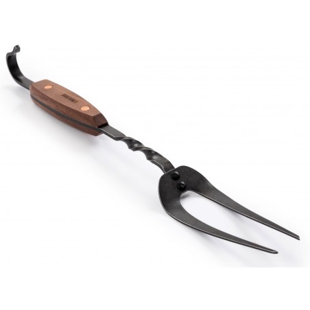 Hold food securely in place for that flawless cut or carve. The Barebones Living Carving Fork is crafted with hand-forged stainless steel and fitted with a smooth, natural walnut handle that keeps cool over high heat. Designed for comfort and safety when working around fire and hot coals.