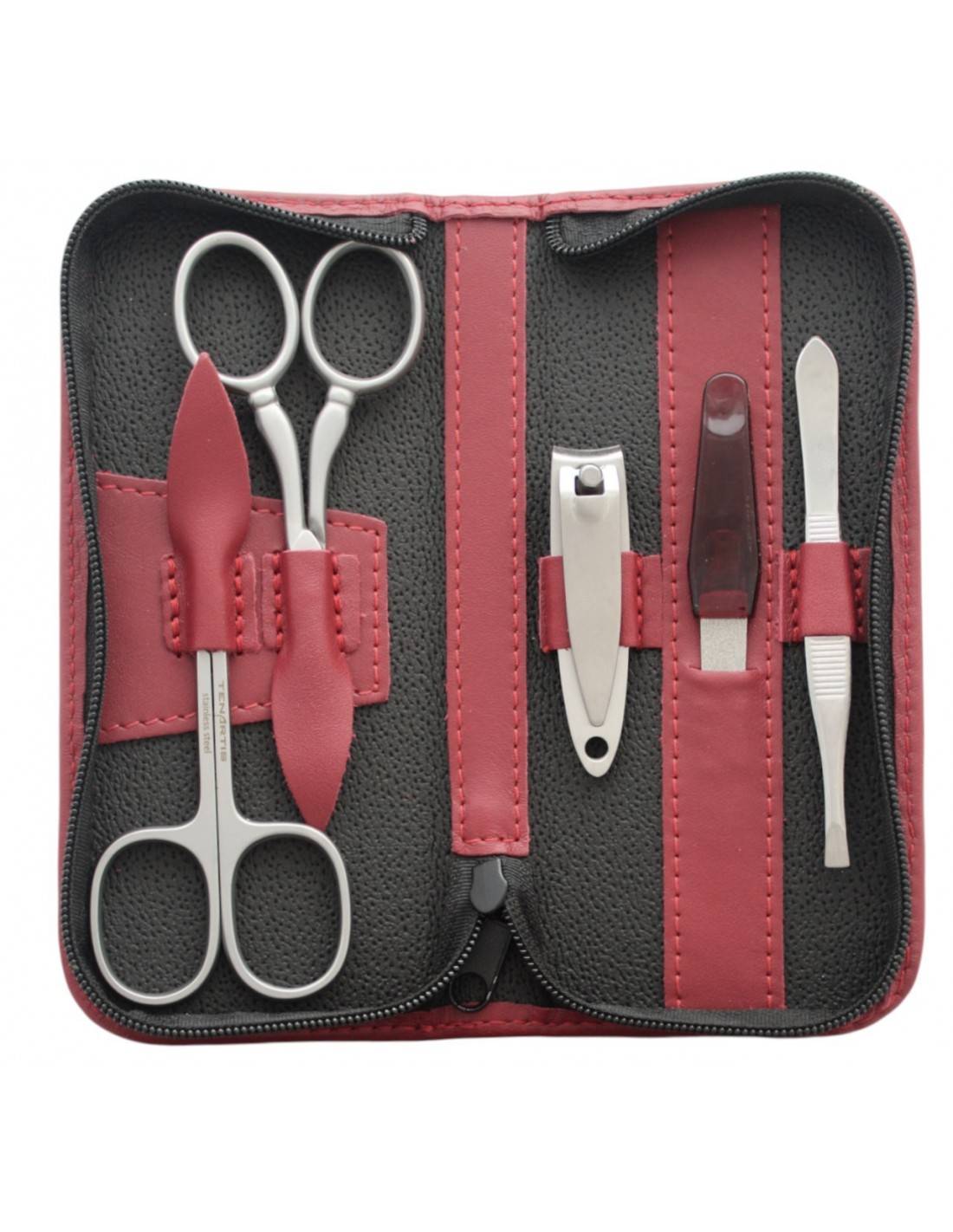 - Contents: cuticle scissors, facial scissors*, nail clipper, tweezers and nail file