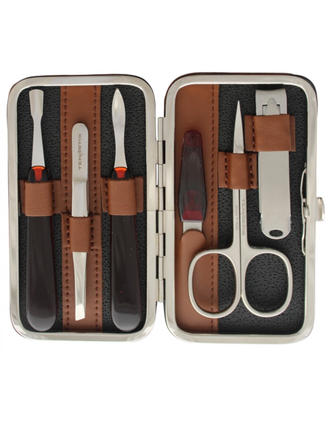 Set Manicura 6 Piezas en Piel Marrón con Cortauñas - Tenartis Made in Italy