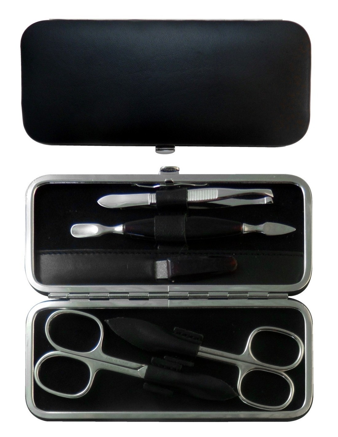 - Contenido: tijeras para cutículas, tijeras para uñas, pinza, lima, instrumento para el cuidado de las uñas y cutículas