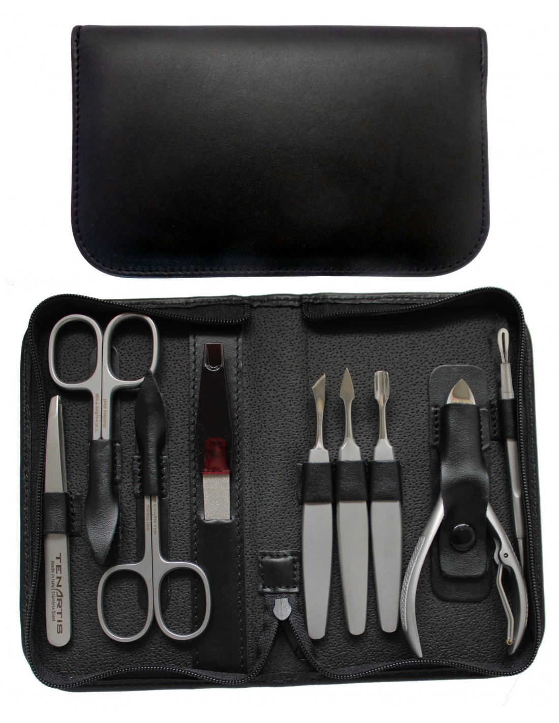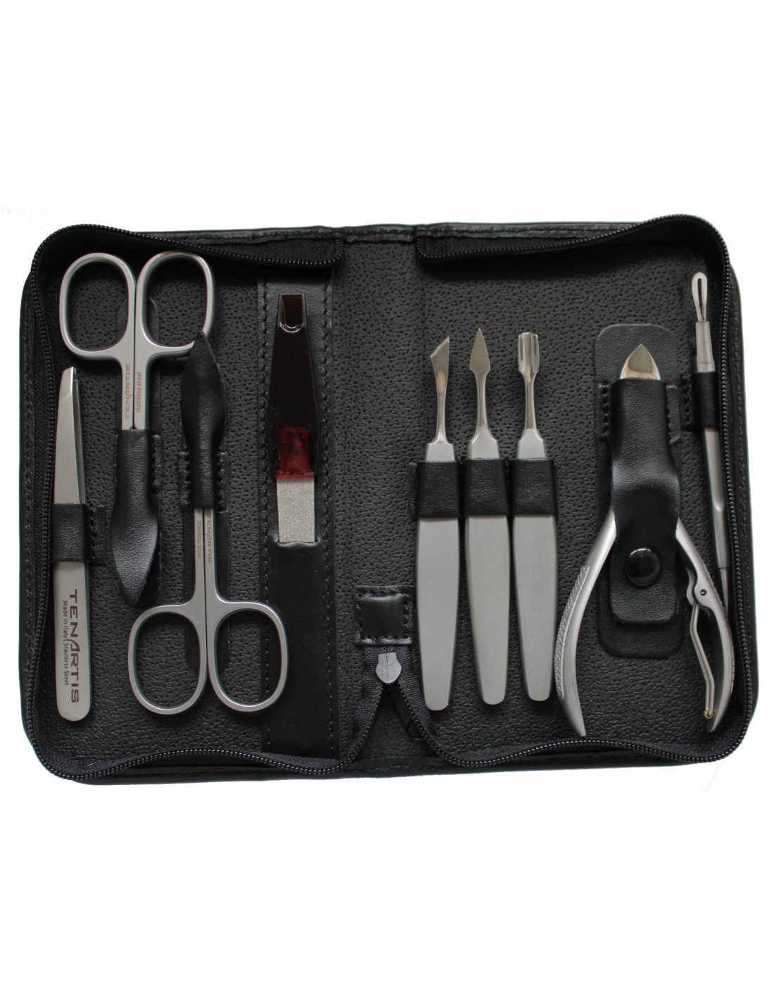 Set Manicura y Pedicura 9 Piezas Inox en Piel con Cremallera - Tenartis Made in Italy