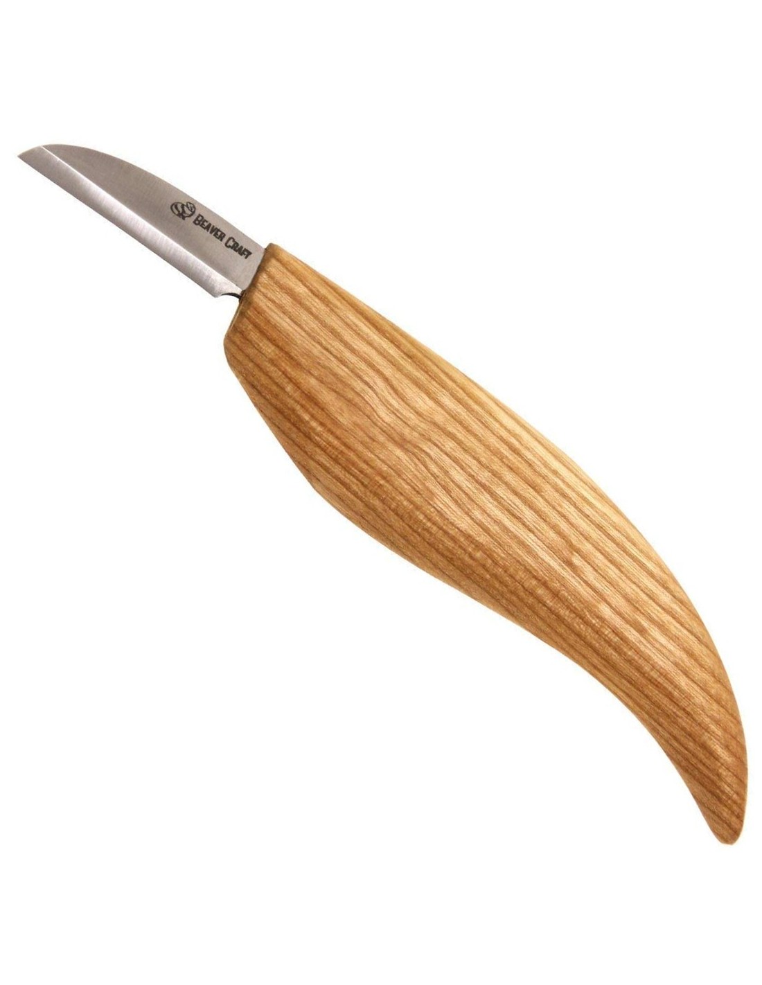 Cuchillo para tallar madera con hoja de acero carbono y mango de fresno.