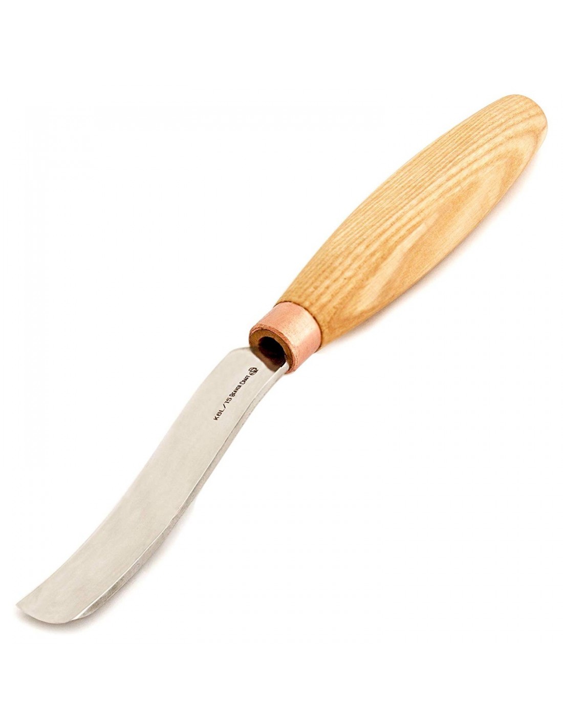 Gouge courbe de 15 mm fabriquée en acier à haut teneur de carbone et manche en frêne.