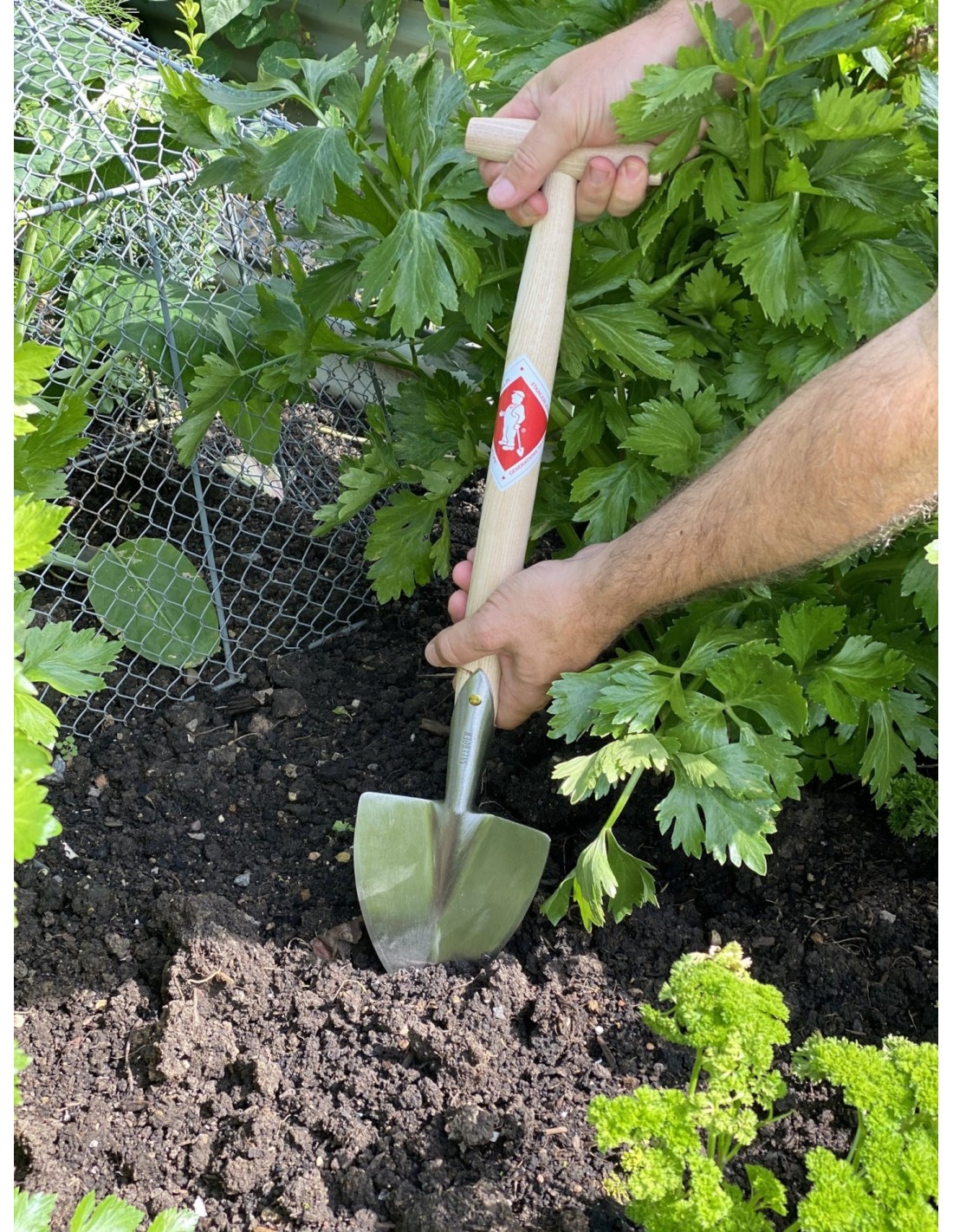 La bêche Great Dixter est équipée d’un manche en T en frêne de 40 cm.