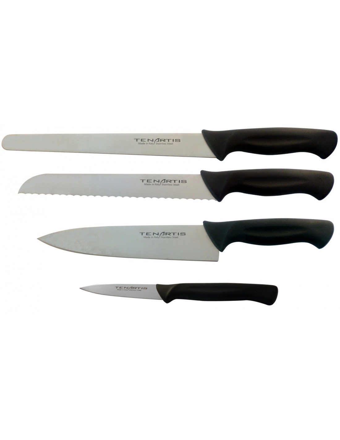 Set di 4 coltelli professionali composto da: spelucchino 10 cm, coltello da cucina 20 cm, coltello da pane 20 cm e coltello per prosciutto e arrosti 20 cm