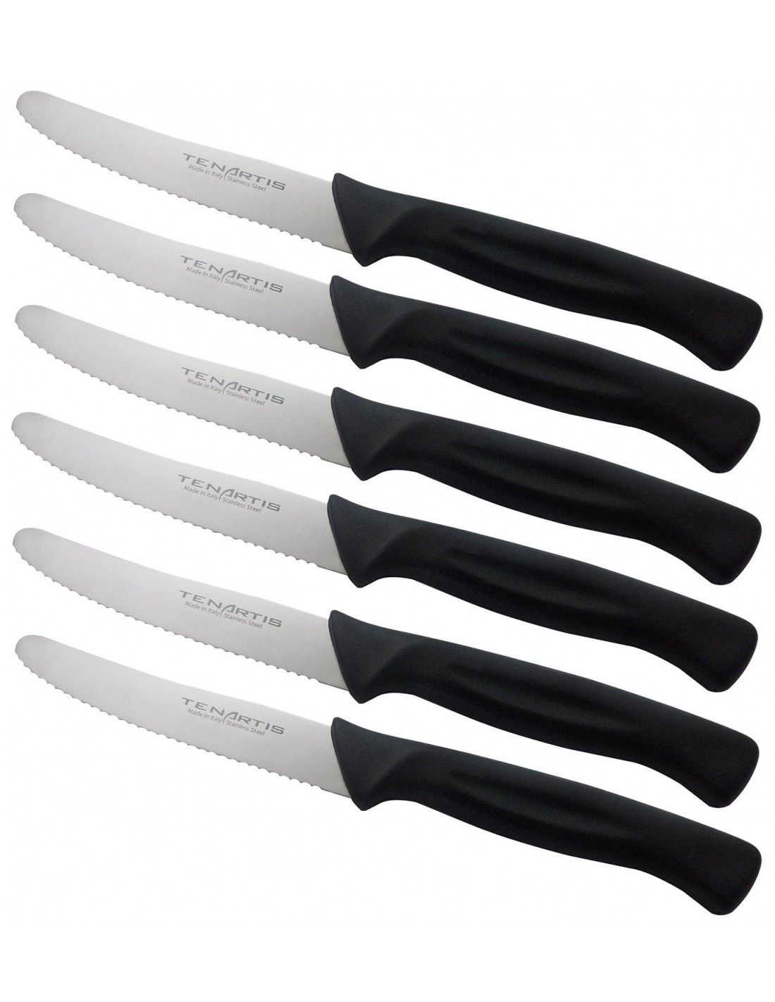 Sei coltelli da tavola per bistecca, pizza e frutta con lama in acciaio inox al Cromo, Molibdeno e Vanadio, manico in polipropilene